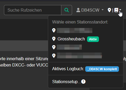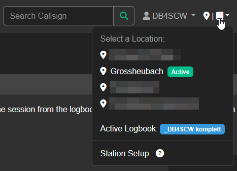 - Activating the option “Station Location Quickswitch” in the user settings, followed by marking the important “home locations”, such as the home QTH or the local park, as favorites. This is done in the station setup dialog by clicking the star icon for these main locations.