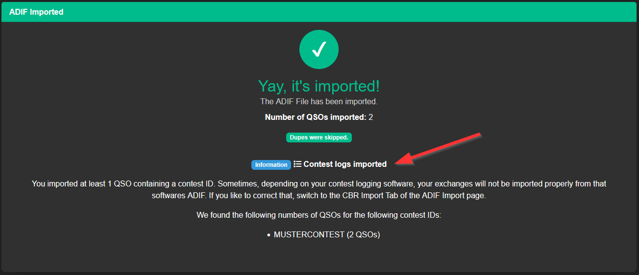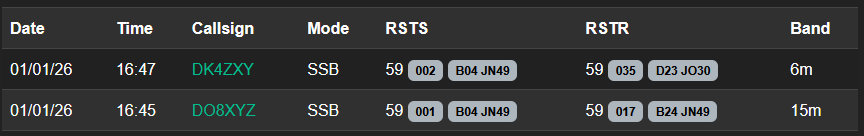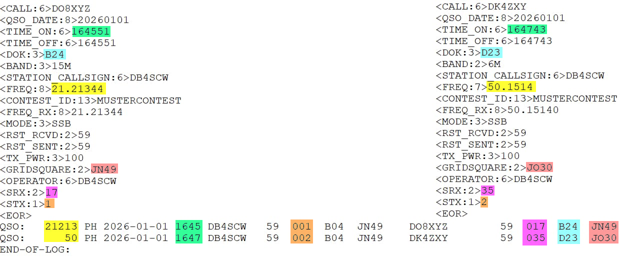 - Sent exchange: In the ADIF, we only have the sent serial number. The sent exchange of my DOK and Grid is never mentioned.